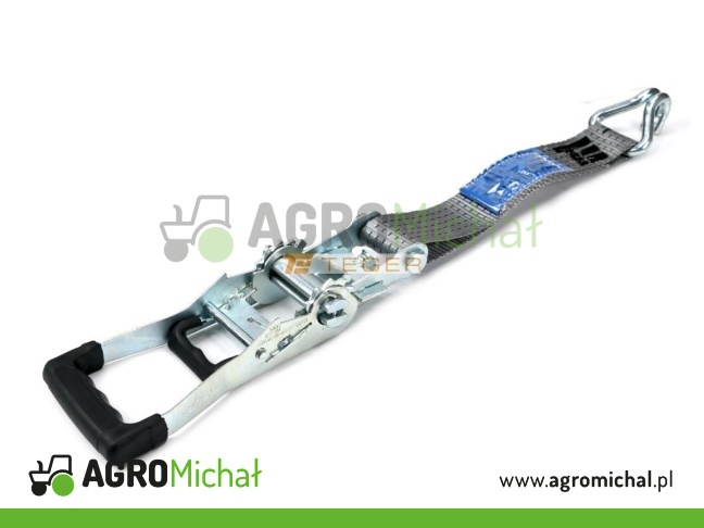Pas transportowy 5T 6m, komplet z napinaczem 230 mm z gumową okładziną, z atestem. Dopuszczalne 5T, długość pasa 5,5 m , długość pasa przy napinaczu 0,5m. Napinacz ze wzmocnioną zębatką. TEGER